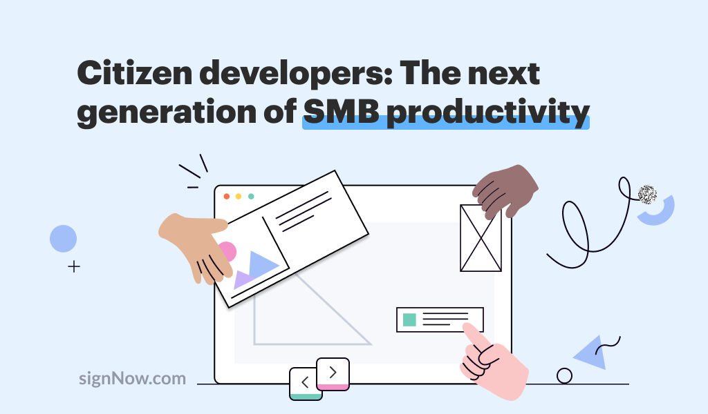 Productivity Top 5 most e-signed documents in 2020 The use of electronic signatures has seen a tremendous surge in popularity due to the COVID-19 pandemic. According to PSI research, legislation in 75 countries already possess the legal ... Productivity Citizen developers: the next generation of SMB productivity Low code/no-code solutions for software development are nothing new. According to a 2020 article by Gartner research, low-code application platforms will account for 65% of all app development by ... Productivity The ultimate contract management automation guide: How to streamline your contract management workflow In 2020, paper-based routines for handling contracts have proven time-consuming and inefficient. A 2019 Benchmark Report by the IACCM suggests that modern, more complex contracts, have an average duration ... Productivity Emboss official company documents electronically to verify their authenticity Many organizations prefer to stamp their company seal on items such as contracts, ownership certificates, and company resolutions. With the signNow Stamp Field feature, you can easily ensure the ... Productivity Academic year 2020-2021: remote education and the key things you should consider The new academic year has started but there is still no common strategy to define whether to educate students remotely, bring them back into the classroom, or create a ... Productivity Remote work is our new normal: tips on how to successfully hire remote workers As the world faces new challenges businesses have to adapt to constantly changing conditions, for example, remote work. It’s relatively new and only recently was it introduced as a ...