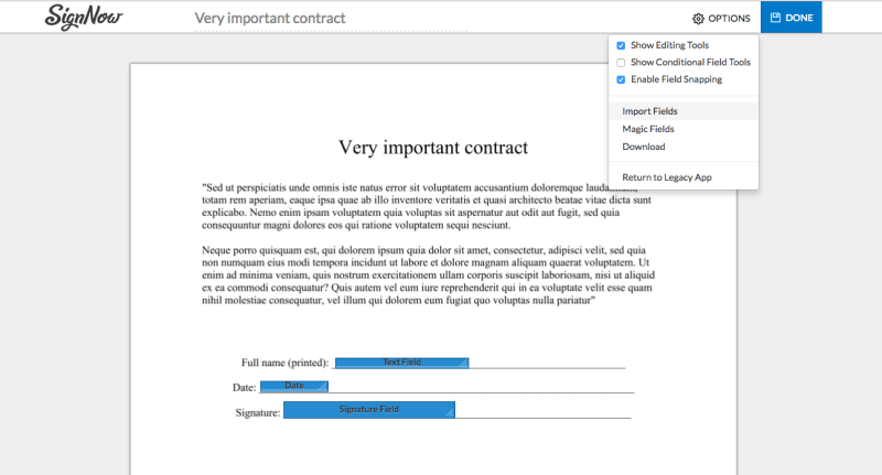 With SignNow, users can easily import fields on web by following the steps in this video. In only 1 minute, users can import signature, text, or date/time fields directly onto their document. For more information, visit SignNow’s University support page.
